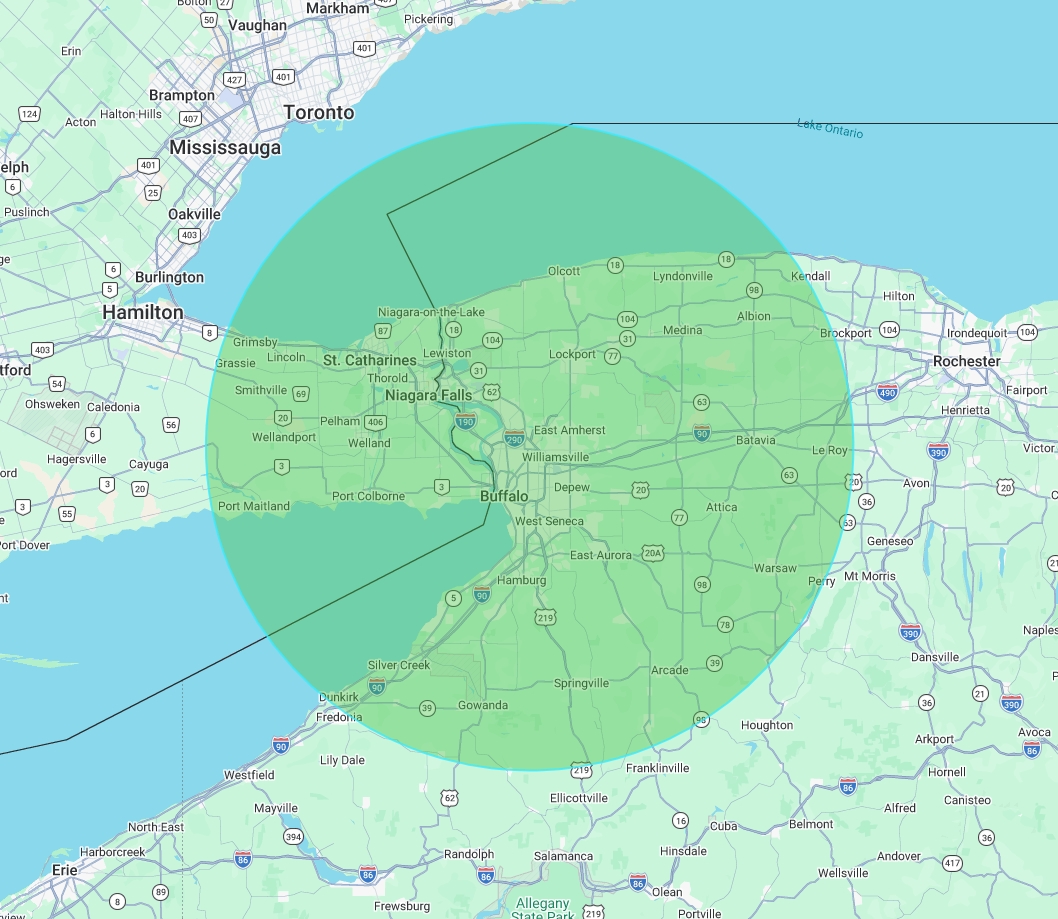 Our GMRS repeater NY_BUF_675 provides reliable communications coverage across a 45-mile radius throughout Western New York.