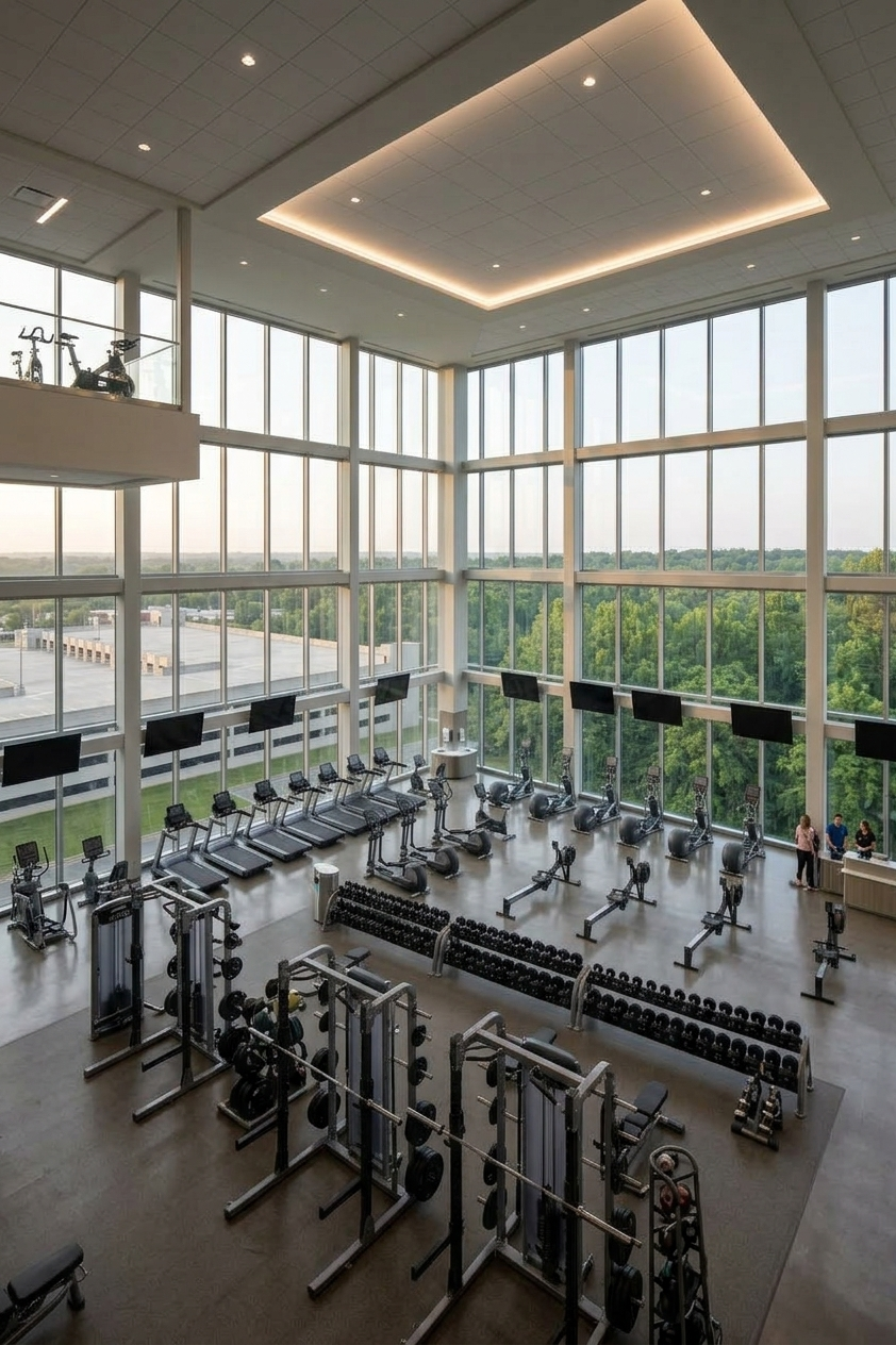 Our fitness center provides breathtaking views of Buffalo while offering professional-grade training equipment and wellness spaces.